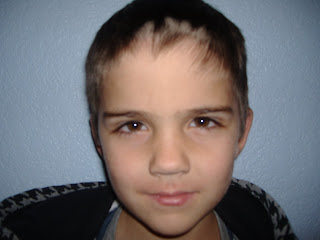 Joel decided that he didn't need the 1500 hours of education to become a hair stylist. I got up at 3:00am to go shopping with Heather. We got home at 1:15pm so I was a little tired so I laid down for a nap, while napping Joel went in the bath room and gave himself a hair cut.(much better than I could of done. haha) John found out when he came to ask if we could go play pool at Gpa Joe and Gma Diane's house. So I guess the scissors go up for now, I thought I had a few more months before the baby proofing needed to be done. Anyways now he wont take his hat off because he knows it looks silly. We are now off to play pool we'll fix the master piece in the morning.